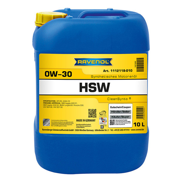 RAVENOL VSW 0W-30 - полностью синтетическое легкотекучее моторное масло, разработанное по технологии CleanSynto® для бензиновых и дизельных двигателей с и без турбонаддува и непосредственным впрыском топлива легковых автомобилей. Минимизирует трение, износ, позволяет экономить топливо, вследствие чего уменьшается эмиссия вредных веществ в атмосферу. Удлиненные интервалы замены согласно требованиям автопроизводителей.