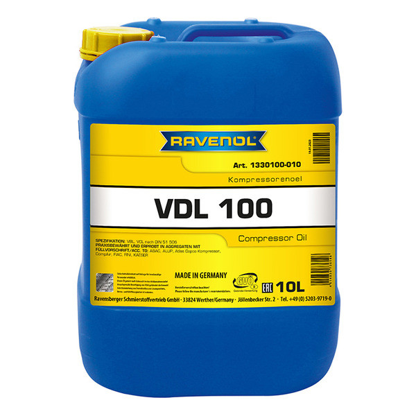 Компрессорное масло RAVENOL Kompressorenoel VDL 100 рекомендовано к применению в передвижных и стационарных поршневых и ротационных компрессорах с рабочими температурами до 220°С, включая раздельную смазку цилиндров в одноступенчатых и многоступенчатых поршневых компрессорах.