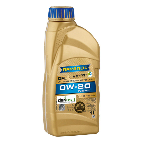 RAVENOL DFE 0W-20 – полностью синтетическое легкотекучее моторное масло на основе ПАО (PAO – полиальфаолефины) с применением технологии CleanSynto® для бензиновых двигателей с и без турбонаддува, например, двигатели GDI, с прямым (непосредственным) впрыском топлива.