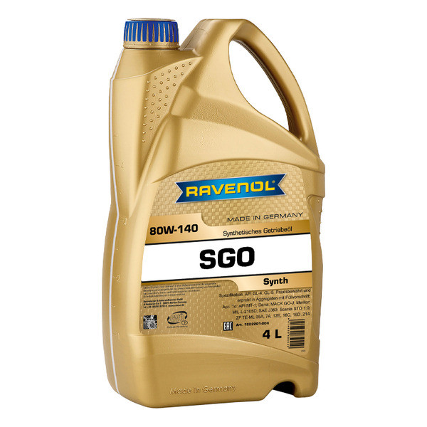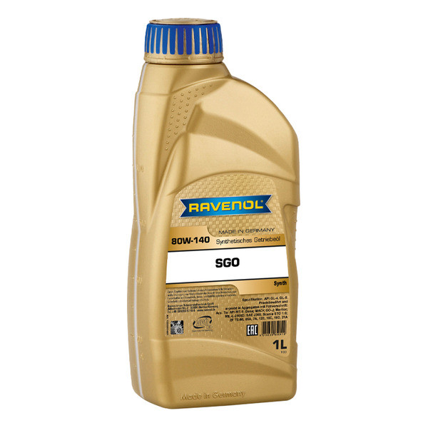 RAVENOL SGO SAE 80W-140 GL-5 – синтетическое трансмиссионное масло для тяжелонагруженных гипоидных коробок передач на основе высококачественного синтетического базового масла с добавлением специального комплекса противоизносных присадок (ЕР).